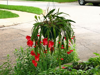Here is a wonderful pink plant that adorned the garden in 2008. It was just about the only plant in 30 years that has ever been taken from my garden. About a month after it had finished blooming I woke up one morning and it was gone. There was a cigarette butt on the street near where it was hanging. I never heard anything ever again about the plant.